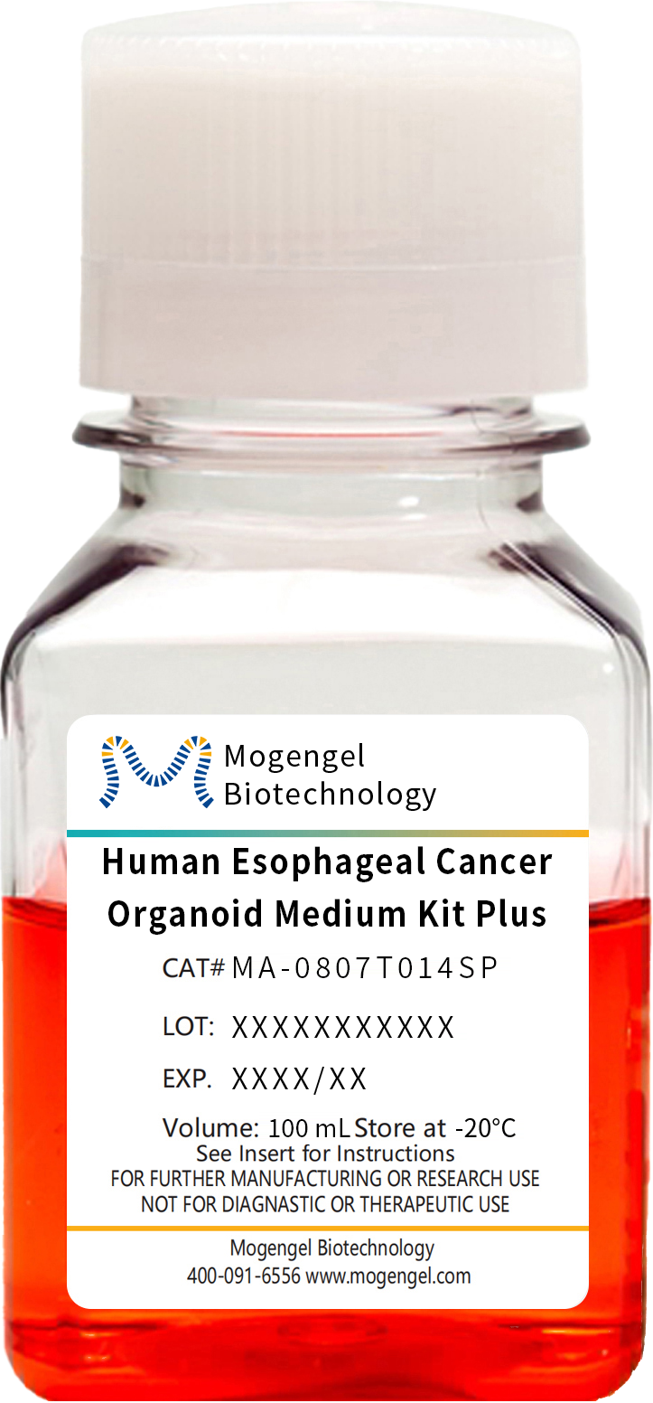 模基生物人食管癌类器官培养基套装Plus(Human Esophageal Cancer Organoid Medium Kit Plus)是一种化学定义的细胞培养基,用于建立和维持人食管癌类器官。病人来源的肿瘤类器官概括了原始肿瘤的基因组和病理特征,因此在医学研究和精准医学中具有巨大的前景。
